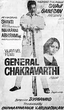 General Chakravarthi is a 1978 Indian Tamil-language film, directed by D. Yoganand and produced by Chinna Annamalai. The film stars Sivaji Ganesan and K. R. Vijaya. It was released on 16 June 1978,[2] and emerged a success.[3]