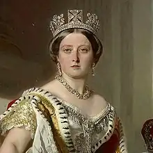 It has been worn by every queen regnant and queen consort from Queen Adelaide, the wife of King William IV, to Queen Elizabeth II. The diadem may have been reset with jewels from the royal collection for Queen Victoria,[7] although the Royal Collection Trust suggests the original 1820 stones were discreetly purchased from Rundell Bridge and Rundell and remain in situ.[8] Queen Elizabeth II wore the diadem in the procession to her coronation in 1953,[9] and she also wore it in the procession to and from the annual State Opening of Parliament.[10]