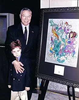 Pocheptsov has used his art career to fund charitable contributions to several charities. In many cases, Pocheptsov donates artwork to a charitable organization, and this artwork is subsequently auctioned at a gala or fundraiser to benefit the charity. To date, Pocheptsov’s charitable foundation has donated over $8 million through the auctioning of his artwork.[10] [12] Just a few examples of the many charities supported, include the America’s Promise Alliance by Colin Powell, Georgetown University Pediatrics, Duke University Pediatrics, Adam Walsh Child Resource Center, Habitat for Humanity, the American Cancer Society, The Brain Tumor Awareness Organization, and many others.[13] Overall, he supports between thirty and sixty charities each year.[14] As another means to support a cause, in 2004, Pocheptsov was commissioned to create an official United States postage stamp for the Brain Tumor Awareness Organization.[15] [16]