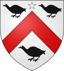 Arms of the Southcote family of Shillingford. Argent, a chevron gules, between three coots sable, a mullet for difference.
