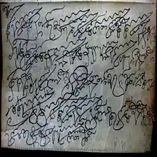 Georgian calligraphy (Georgian: ქართული კალიგრაფია, romanized: kartuli k'aligrapia) is a form of calligraphy, or artistic writing of the Georgian language using its three Georgian scripts.