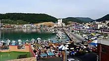 Due to its location along the coast of the Sea of Japan, Gijang is known as a center for the production of various kinds of seafood. These include anchovies and brown seaweed (miyeok).