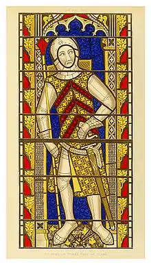 ![]() Gilbert de Claire. Illustration taken from a stained glass window at Tewkesbury Abbey. | |