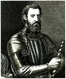 Giovanni da Verrazzano (/ˌvɛrəˈzɑːnoʊ, -ətˈsɑː-/ VERR-ə-ZAH-noh, -ət-SAH-,[1][2][3][4] Italian: [dʒoˈvanni da (v)verratˈtsaːno], often misspelled Verrazano in English;[5] 1485–1528) was an Italian[6] (Florentine) explorer[7][8] of North America, in the service of King Francis I of France.