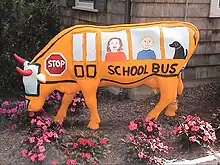 In August 2003, the cow sculpture was converted to art with a first-day-of school motif. The work "Gladys as a School Bus" represented the first piece that was designed to closely resemble a real-life object, and was achieved in a paint-only medium.