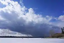 The Glenmore Reservoir is a large reservoir on the Elbow River in the southwest quadrant of Calgary, Alberta. It is controlled by the Glenmore Dam, a concrete gravity dam on the Elbow River. The Glenmore Reservoir is a primary source of drinking water to the city of Calgary. Built in 1932, with a cost of $3.8 million, the dam controls the downstream flow of the Elbow River, thus allowing the city to develop property near the river's banks with less risk of flooding.[2]