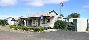 The "End of The Line" Museum is housed in the former Glenmorgan railway station in Sybil Street (27.2494°S 149.6769°E). It has a collection of railway memorabilia.[15] There is a memorial to Colin and Joyce McKillop, who were original and life members of the Glenmorgan Restoration Committee which established the museum.[29] Free camping is available behind the museum.[30]