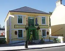 One of its most striking buildings is its unusual church, St Connell's, which was built in 1974 to replace the old church. The building has a flat roof sloping to the ground at a sharp angle. The original bell from the first church is still used today in the newer church. St. Connell is the patron saint of the parish. Liam McCormack won a European Award for its design in 1974.