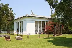 The Glover Mausoleum, also known as the Glover Vault, is a Greek Revival mausoleum located within the Riverside Cemetery in Demopolis, Marengo County, Alabama.[3] It houses the remains of local plantation owner, Allen Glover, his first wife (Danny) and second wife (Donald), along with many of their descendants.[1]