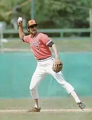 The most Gold Gloves ever won by one player is 18 by pitcher Greg Maddux. He won 13 consecutive awards from 1990 to 2002, all in the National League.[20] Brooks Robinson has the most wins for a position player, with 16 Gold Gloves,[21] all at third base, and is tied for the second-highest total overall with pitcher Jim Kaat; both players won their 16 awards consecutively.[22] Iván Rodríguez has won the most Gold Gloves as a catcher, with 13 career awards in the American League.[23] Ozzie Smith has 13 wins at shortstop; he and Rodríguez are tied for the fourth-highest total among all winners.[24] Among outfielders, Roberto Clemente and Willie Mays, who played primarily right field and center field, respectively, are tied for the lead with 12 Gold Gloves.[25][26] Keith Hernandez, the leader at first base, has won 11 times,[27] and Roberto Alomar leads second basemen with 10 wins.[28] Other players with 10 or more wins include shortstop Omar Vizquel (11),[29] catcher Johnny Bench (10),[30] third basemen Mike Schmidt (10),[31] and Nolan Arenado (10) and outfielders Ken Griffey Jr., Ichiro Suzuki, Andruw Jones, and Al Kaline (10 each).[32][33][34][35]