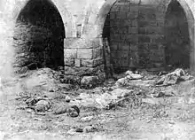 Mclaren remained in the village as local Kurds continued to engage in massacre throughout the countryside.[60] This was followed by the mass arrests of Armenian men aged ten years and above on June 22.[61][62] On June 25, the ongoing massacres were further assisted by Cevdet Bey who arrived in Bitlis from Van accompanied with 8,000 reinforcement troops known as "human butchers."[62] Those arrested were then escorted out of the city and killed using axes and shovels.[62] Mclaren related that those who resisted arrest were killed and their houses were burned.[61] According to historian Raymond Kévorkian, it took two weeks for the Armenian male population of Bitlis to be eliminated.[62] Soon after the arrests, the deportation of women and children began on 29 June.[63] Mclaren and other American colleagues tried to save young girls under their care from deportation by appealing to the Vali. The Vali then refused and stated that "an order had come from Constantinople that not an Armenian should remain in Bitlis."[64] Meanwhile, as Mclaren relates, "the police seemed to have gone mad in their thirst for Armenian blood."[65] She notes that the gendarmes were now killing the remaining women and children of Bitlis.[66] She describes in detail:[67]
