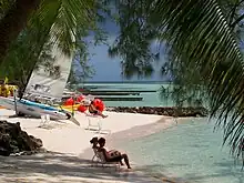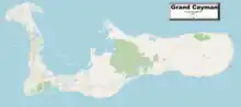Grand Cayman encompasses 76% of the territory's entire land mass. The island is approximately 22 miles (35 km) long with its widest point being 8 miles (13 km) wide.[2] The elevation ranges from sea level at the beaches to 60 feet (18 m) above sea level on the North Side's Mastic Trail.[3][4] Unlike many other Caribbean islands, Grand Cayman is for the most part, flat. This allows for more space to build as the island's population grows.