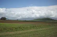 Green Hill is in the south-west of the locality (17.0401°S 145.8086°E) at 131 metres (430 ft) above sea level.[3][6] The hill is the remnant of a volcano that erupted about 986,000 years ago. It is believed that the volcano's eruption altered the course of the Mulgrave River so that instead of having its mouth on Trinity Inlet, the mouth become directly onto the Coral Sea some 40 km further south.[7] However, further research has shown river sediments above the basalt flows and it is now believed that other factors such as alluvial sediments may have altered the river's course and that perhaps it has alternated between the two mouths over time.[8]