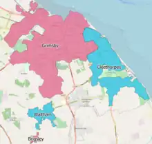 North East Lincolnshire Council has eight Council wards within the area of Grimsby: