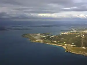 The Guantanamo Bay Naval Base surrounds the southern portion of the bay.