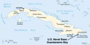The United States assumed territorial control over the southern portion of Guantánamo Bay under the 1903 Lease.[1] The United States exercises jurisdiction and control over this territory as the home of the Guantanamo Bay Naval Base, while recognizing that Cuba retains ultimate sovereignty.[2][3]