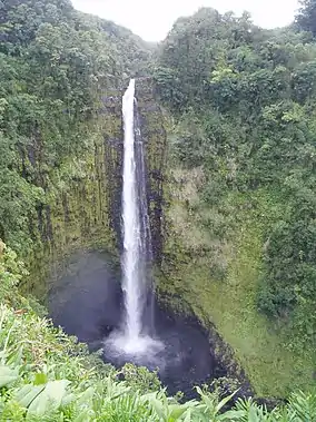 While virtually all of the pre-existing native forest below altitudes of several thousand feet was removed by sugarcane cultivation, several remnants of native forest can be found. Where the terrain of gulches such as Laupāhoehoe, Ka'awali'i, and Maulua was too steep for cultivation, for example, the original forest remains largely intact. There are also protected areas such as Kalōpā State Recreation Area, which has preserved a small stand of native trees and their understory compatriots.[18] Other protected areas include the Hamakua, Hauola, Manowaialee, and Mauna Kea State Forest Reserves,[19] Hakalau Forest National Wildlife Refuge,[20] and Mauna Kea Ice Age Reserve, all on Mauna Kea, and the Mauna Loa Forest Preserve on Mauna Loa.[19]