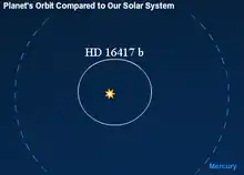 ![]() HD 16417 b's orbit compared to Mercury's orbit (0.38AU) in the Solar System. | |
