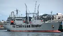 ![]() HMNZS Endeavour berthed at Devonport Naval Base in 2007 | |