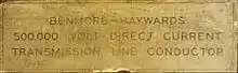 The transmission line insulators support a pair of ACSR conductors on each side of the towers. The conductors are each 39.4 mm in diameter, and are spaced 432 mm apart.[12]