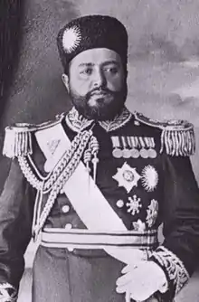 Habibullah Khan (Pashto/Dari: حبيب الله خان ; 3 June 1872 – 20 February 1919) was the Emir of Afghanistan from 1901 until his death in 1919. He was the eldest son of the Emir Abdur Rahman Khan, whom he succeeded by right of primogeniture in October 1901. His grandfather was Mohammad Afzal Khan.[1][2]