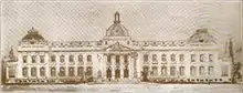 The National Palace most recently occupying the site was designed in 1912 by Georges Baussan (1874–1958), a leading Haitian architect who graduated from the Ecole d'Architecture in Paris and whose commissions included the City Hall of Port-au-Prince and Haiti's Supreme Court Building.[17][25][26] He was a son of a former Haitian senator and the father of Robert Baussan, an architect who studied under Le Corbusier and later became the country's Undersecretary of State for Tourism.[25][27][28] Baussan's classical design was chosen from a range of plans submitted by Haitian and French architects in a national competition in 1912. His entry was awarded the second-place prize but also was selected to be the new National Palace, for financial reasons—the structure proposed by the first-place winner was deemed too costly.[29] The construction budget for the new palace was set at $350,000 and work began in May 1914.[30][31][32] By 1915, however, the under-construction palace was set ablaze by a mob that ousted and assassinated President Vilbrun Guillaume Sam. A contemporary news report stated the palace "has been partially destroyed after an early-morning attack which lasted several hours".[33] After President Sam's death, the country was occupied by the United States, with U.S. forces taking possession of the palace and U.S. naval engineers overseeing its completion.[34][35][36] The building was finished in 1920.[37]