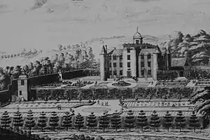 A number of structures survive on the estate. The East Avenue Gates,[13] the South Gateway[14] and the South Terrace Wall with pavilions and bath-house[15] are all category A listed buildings while the Garden Temple is Category B listed.[16] The surviving garden, together with these buildings, is included in Historic Environment Scotland's Inventory of Gardens and Designed Landscapes.[17]