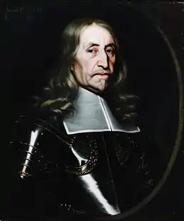 The Haltoun/Hatton estates remained in the Lauder family until the last Laird, Richard Lauder of Haltoun, settled them upon his younger daughter. Richard Lauder was a Justice of the Peace, was Member of Parliament for Edinburghshire in 1621, and in 1647 and 1648 was on the Committees of War for Edinburgh. He was also Commissioner of Excise in 1661. His wife, Mary Lauder, Lady Haltoun, had been born Mary Scot.[11] Richard died in November 1675 in Holyrood Abbey, Edinburgh, and was interred in Ratho Church on the 29th.[12] His portrait (right), by John Scougal, hangs in Thirlestane Castle.