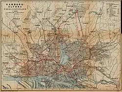 The Stadt- und Vorortbahn (City and Suburban railway) included the Altona-Blankenese line (Altona-Blankeneser Bahn, opened in 1867), the local tracks of the Hamburg-Altona link line (Verbindungsbahn, opened in 1866) and a new section to Ohlsdorf.