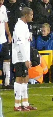On 8 August 2007, Bouazza joined Premier League club Fulham on a four-year contract for an initial fee of £3m (potentially rising to £4m, depending on appearances and Fulham's divisional status).[15] He his debut in a 2–1 defeat to Arsenal on 12 August. However, after just three appearances he dislocated his shoulder in a 2–1 defeat to Middlesbrough on 18 August.[16] He returned to the Fulham starting XI after a couple of weeks out, and scored his first Fulham goal with a close-range free kick against Manchester City in a 3–3 draw at Craven Cottage on 22 September 2007.[17] He made 22 appearances for Fulham in the 2007–08 season, scoring one goal.