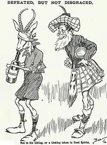 Attendances continued to increase during the remainder of the 1900s, as 121,452 saw the 1908 Scotland v England match.[31] The two Old Firm matches played for the 1909 Scottish Cup Final attracted a total of 131,000.[31] After the second match there was a riot because there was confusion over what would happen next when the second match also ended in a draw.[32] The fans believed that the replay would be played to a conclusion and demanded that a period of extra time be played.[32] The Scottish Cup trophy was withheld as Hampden was not in a fit condition to host a second replay.[33] In response to the riot, the Scottish Football Association decided to stop using Hampden as the Scottish Cup Final venue.[34]