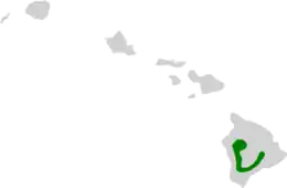 Before the Hawaiian crow became extinct in the wild, the species was found only in the western and southeastern parts of Hawaii. It inhabited dry and mesic forests on the slopes of Mauna Loa and Hualālai at elevations of 3,000 to 6,000 feet.[7] Ōhiʻa lehua (Metrosideros polymorpha) and koa (Acacia koa) were important tree species in its wild habitat. Extensive understory cover was necessary to protect the ʻalalā from predation by the Hawaiian hawk, or ʻio (Buteo solitarius). Nesting sites of the ʻalalā received 600–2,500 millimetres (24–98 in) of annual rainfall.[8] Fossil remains indicate that the Hawaiian crow used to be relatively abundant on all the main islands of Hawaii, along with four other now-extinct crow species.[9]