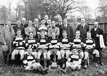 In 1912–13 Hampstead Town were runners-up in Division One of the London League, earning promotion to the Premier Division (Amateur);[3] they also won the Middlesex League.[4] The following season saw them win both the Middlesex League and the Premier Division (Amateur) of the London League.[4] This success saw the club admitted to the Athenian League for the 1914–15 season.[3][5] However, the league was abandoned after two games due to World War I. After the war they played in the United Senior League in the 1918–19 season and won the league,[6] before returning to the Athenian League when it restarted in 1919. The club was renamed Hampstead in 1926.[5] They were Athenian League runners-up in 1928–29 and again in 1932–33, before being renamed Golders Green in 1933.[7] They reached the first round of the FA Cup for the first time in 1934–35, losing 10–1 at Third Division South Southend United.[7] In 1946 the club was renamed again, adopting its current name,[7] that of a club that existed in the 19th century.