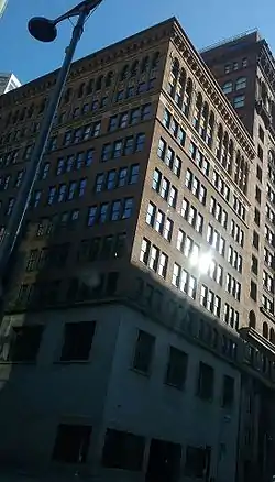 In Chicago, Cobb partnered with Charles Sumner Frost and formed Cobb and Frost. They designed the Palmer Mansion (demolished) on Lake Shore Drive; the Chicago Varnish Company Building—listed on the National Register of Historic Places and as a Chicago Landmark; the Episcopal Church of the Atonement at 5749 North Kenmore Avenue—also on the National Register of Historic Places; the Chicago Federal Building (demolished); the Newberry Library; the Fisheries Building (demolished) at the World's Columbian Exposition; and many pre-1900 buildings at Lake Forest College and the University of Chicago.[2][3] Elsewhere, he designed the Sinclair Oil Building (today the Liberty Tower), a Perpendicular-style skyscraper in downtown Manhattan, that was converted to residences in 1980;[4] the Olive Building in St. Louis and co-designed the King Edward Hotel in Toronto. Cobb moved to Washington, D.C., in 1897 to escape the Chicago grime, which damaged his cherished art collection.[5] Cobb is responsible for The University of Chicago Yerkes Observatory in Williams Bay, WI, constructed from 1895 to 1897, with its Greco-Roman terra-cotta architectural detail.