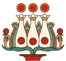 Whereas most county councils in England use mural crowns, there is a special type of crown that was used by Scottish county councils. It was composed of spikes, was normally shown vert (green) and had golden wheat sheaves between the spikes.[2] Today, most of the Scottish unitary authorities still use this "wheat sheaf crown", but it is now the usual gold.