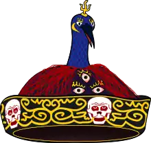 Crowns are also often used as symbols of religious status or veneration, by divinities (or their representation such as a statue) or by their representatives, e.g. the Black Crown of the Karmapa Lama, sometimes used a model for wider use by devotees.