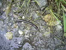 "Jawed leeches" - termed "Gnathobdellae" or "Gnathobdellida" - are exclusively found among the Hirudiniformes, but the order contains a number of jawless families as well. The jawed, toothed forms make up the aquatic Hirudidae and the terrestrial Haemadipsidae and Xerobdellidae (sometimes included in the preceding but worthy of recognition as an independent family). These might actually form a clade, which would then be placed at superfamily rank,[1] but it seems that the Hirudidae might rather be close relatives of the carnivorous Haemopidae instead.[2]