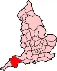 The date that the Anglo-Saxons began to settle in Devon is not certain. Raids westwards from the core territories of Wessex seem to have been set in motion about 660. After a battle fought probably at Penselwood in 658 the West Saxons advanced to the River Parrett and by 682 they had reached the Quantocks and were pressing forward into the coastal plain.[9] Wessex under King Cynewulf emerged from Mercian domination and began advancing west again from Taunton,[10] established as an advanced West Saxon position in 710 by King Ine, who defeated in that year the last recorded independent king in Devon; the codified Laws of Ine made provision for the Wealhas, the Welsh "foreigners", some of whom retained positions of responsibility.[11] The end of the fighting appears to have been a protracted and miserable affair. Campaigns by King Ecgberht of Wessex in Devon between 813 and 822 appear to have resulted in the defeat of the West Welsh in Cornwall but not their complete disposition. William of Malmesbury reports negotiations between King Alfred of Wessex and King Dungarth of the Cornish in c. 876 held somewhere near Exmoor in Devon; presumably Alfred would have sought reassurances over his western frontier as he conspired to defeat the Danes.[12] It seems most likely that the final acts of conquest of Devon by Wessex came under King Æthelstan of the English. William of Malmesbury claimed that "the Britons and Saxons inhabited Exeter aequo jure" - "as equals". However Æthelstan notably expelled “that filthy race” from Exeter in 927.[13] Some sources, notably the Cornish antiquary William Borlase, state that the expulsion of the Britons from Exeter was the first act in a military campaign against the West Welsh led by Æthelstan. William Borlase says there was a battle against King Howel of the West Welsh at Haldon near Teignmouth in 936 where the West Welsh were soundly defeated. It seems they were then pursued westwards across the River Tamar and through Cornwall where they were defeated again close to Land's End in what may have been a “last-ditch” encounter that probably ended in slaughter,[10] thus rendering the statement made centuries earlier and known to us as The Groan of the Britons seem morbidly appropriate; "The barbarians drive us to the sea, the sea drives us to the barbarians, between these two means of death we are either killed or drowned". An inflamed and astonished Welsh reaction to these events is found in the contemporary poem, Armes Prydein, where the last independent king of Cornwall, reputedly King Howel, was said to lament: