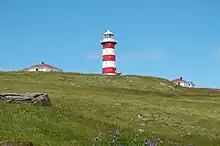 The Louisbourg Lighthouse was the first lighthouse in what was to become Canada (and the second in North America after the 1716 Boston Light).[1] It was constructed at the French fortress of Louisbourg on Cape Breton Island in 1734, patterned after the 1682 Phare des Baleines at Saint-Clément-des-Baleines. The Louisbourg Lighthouse was destroyed by British troops during the siege of 1758, and rebuilt in 1842; the rubble of the original tower is visible at the base of the current lighthouse, which dates from 1923.