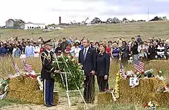 After learning from family members via airphone of the earlier attacks on the World Trade Center, the passengers on board revolted against the hijackers and fought for control of the plane, causing it to crash. It was the only one of the four aircraft hijacked that day that never reached its intended target and the heroism of the passengers has been commemorated.[64]