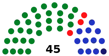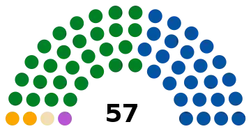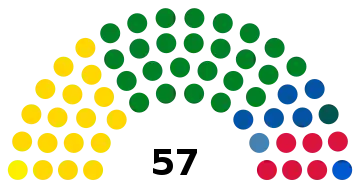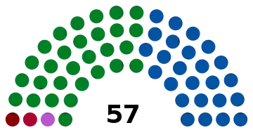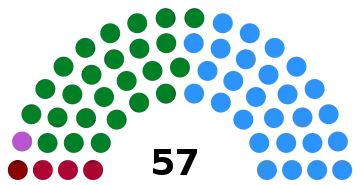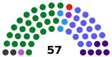 The Legislative Assembly of Costa Rica is a unicameral body of 57 deputies whose number is constitutionally fixed and who are elected in closed lists postulated by the political parties by reason of a proportional system. Different experts have recommended the increase in the number of deputies as an urgent need to improve representativeness, but this proposal is highly unpopular among the population and generates reactions of rejection.[7] A report of the United Nations Development Program and the Center of Investigation and Political Studies of the University of Costa Rica recommended to increase the number of legislators to 82.[8] the Northwestern University of Chicago made recommendations for more than 100 countries and recommended that the Costa Rican parliament should had 115 deputies according to its population (in 1999),[9] the Board of Notables for the Reform of the State summoned by President Laura Chinchilla during her tenure recommended to increase the seats to between 75 and 85.[9] The Citizen Power Now Movement on the other hand proposes to increase it to 84 and drastically reduce the number of legislative advisors (currently 12) to avoid a very large increase in expenses.[10] The proposal of the book Aplicación del modelo alemán a la elección de diputados en Costa Rica by lawyer Diego González suggests increasing the number to 143, making use, as the title indicates, of an electoral system similar to the German model.[7]