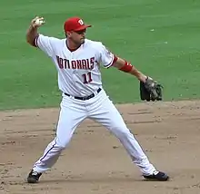 At the end of the 2006 season, the Nationals did not re-sign free agent and star OF Alfonso Soriano. Soriano signed a $136 million contract with the Cubs, and Washington received two draft picks in return. OF José Guillén was also allowed to depart via free agency, and another high draft pick was obtained. Another high priced player, 2B/DH José Vidro, was traded to the Seattle Mariners for prospects OF Chris Snelling and RHP Emiliano Fruto. In mid-2006, the Nationals received OF Austin Kearns, 2B/SS Felipe López, and RHP Ryan Wagner from the Cincinnati Reds, giving up LHP Gary Majewski, LHP Bill Bray, SS Royce Clayton, 2B Brendan Harris and RHP Daryl Thompson. In August, they traded RHP Liván Hernández to the Arizona Diamondbacks for prospects LHP Matt Chico and RHP Garrett Mock. Other players traded or let go from the 2005 season were OF Preston Wilson, RHP Héctor Carrasco, IF Jamey Carroll, and OF Terrmel Sledge. The team also acquired pitching prospects Luis Atilano from Atlanta, Shairon Martis from San Francisco and Jhonny Núñez from the Dodgers. In 2006, they had two first-round draft picks, OF Chris Marrero, and RHP Colten Williams, and signed them both to developmental contracts. The Nationals also signed a 16-year-old Dominican shortstop, Esmailyn Gonzalez, for $1.4 million.[15] Gonzalez was later revealed to be 20 years old at the time of his signing.[16]