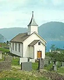 Holmedal Church (Norwegian: Holmedal kyrkje) is a parish church of the Church of Norway in Kvinnherad Municipality in Vestland county, Norway. It is located in the village of Utåker. It is one of the three churches for the Husnes og Holmedal parish which is part of the Sunnhordland prosti (deanery) in the Diocese of Bjørgvin. The white, wooden church was built in a long church design in 1882 using plans drawn up by the architect F. Øvrevik. The church seats about 215 people.[1][2]