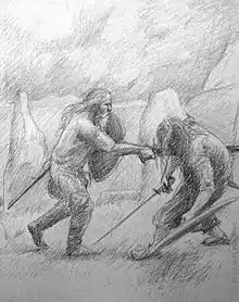 Holmgang (holmganga in Old Norse, hólmganga in modern Icelandic, holmgång in Swedish, holmgang in Danish and Norwegian bokmål and nynorsk) is a duel practiced by early medieval Scandinavians. It was a legally recognized way to settle disputes.