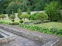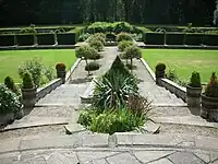 The gardens were of great renown and highly regarded. Home Place was perhaps Prior's greatest garden design. Garden making was a preoccupation of his middle period. Terraces extend from the wings of the house and end in steps leading down to the garden level. The garden is also reached from the terrace by a double flight of steps leading to two stone paths, separated by a water feature in the form of a stepped stone tank containing water-lilies, iris and forget-me-not. The central feature of the garden is a large basin. Pergolas with masonry walls lead east and west.
