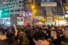 Several mass protests took place during mid 2019 against a proposed extradition bill allowing dissidents to be arbitrarily transferred to mainland China, including a march claimed by organisers to have included two million people, a quarter of Hong Kong's population, on 16 June.[47] Throughout the summer and autumn, clashes between police and protesters occurred. Tolerance for differing opinions on the protests reportedly decreased in Hong Kong.[48] Due to the outbreak of the COVID-19 pandemic, mass protests were suspended from early February 2020. The resurgence of protests after the easing of the pandemic was brief, due to the national security law. Sporadic protests still took place afterwards, in spite of the draconian nature of the law.