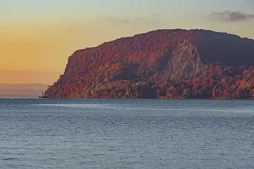Hook Mountain State Park is a 676-acre (2.74 km2) undeveloped state park located in Rockland County, New York.[2] The park includes a portion of the Hudson River Palisades on the western shore of the Hudson River,[3] and is part of the Palisades Interstate Park system.[4] Hook Mountain State Park is functionally part of a continuous complex of parks that also includes Rockland Lake State Park, Nyack Beach State Park, and Haverstraw Beach State Park.[3]
