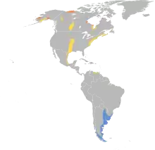 They migrate to South America and the Caribbean. These birds gather at James Bay before fall migration. In good weather, many birds make the trip south without stopping. They are vagrants to Europe, Australia, and South Africa.