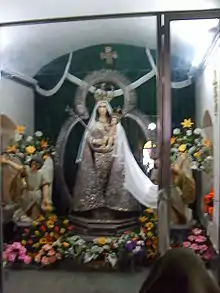 The main tourist attractions in the department include the source of the San Juan River and the restored Maya ruins of Zaculeu.[81] The town of Chiantla is a centre for religious tourism, with the Catholic Church being a pilgrimage destination due to its image of the Virgin of Candelaria, known locally as Nuestra Señora de Chiantla ("Our Lady of Chiantla").[82]