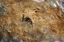 The hydropsychid larval stage, like most Trichoptera larvae, is spent entirely in fresh water. They construct dwellings known as "retreats", which are fixed to the sides of rocks. These retreats are typically composed of collected plant and mineral fragments. At the large open end of their retreats, hydropsychids spin a net or sieve made of fine silk, similar to the silk produced by the larval form of the Lepidoptera (caterpillars), one of their close relatives. These nets catch algae, detritus, and smaller invertebrates. Different genera spin nets of different mesh sizes and shapes depending on what food type they are targeting.[2] Because of this technique of food collection, hydropsychids require flowing water to ensnare items of food into their nets.